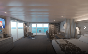 Categorie SRP, SLP (Promenade View Suite)Deze suite heeft uitzicht op de promenade, kingsizebed dat kan worden omgezet in twee eenpersoonsbedden, zithoek met slaapbank, aparte woonkamer met slaapbank, kledingkast, badkamer met douche, föhn, interactieve TV, telefoon, kluis, minibar en airconditioning. Bezetting: max. 6 pers. |